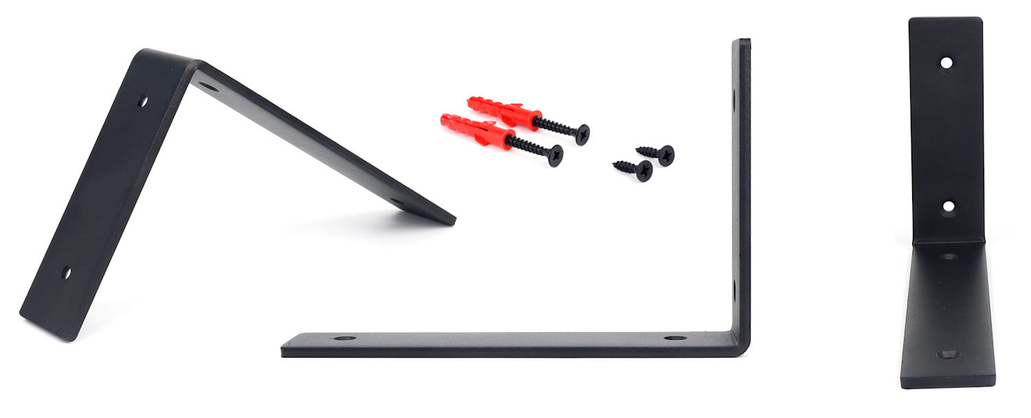 Materiał użyty do produkcji wspornika to stal lakierowana proszkowo, co gwarantuje trwałość i odporność na uszkodzenia oraz korozję. Czarne matowe wykończenie nadaje produktowi nowoczesny i industrialny charakter, doskonale komponujący się zarówno z surowymi, jak i bardziej klasycznymi wnętrzami.