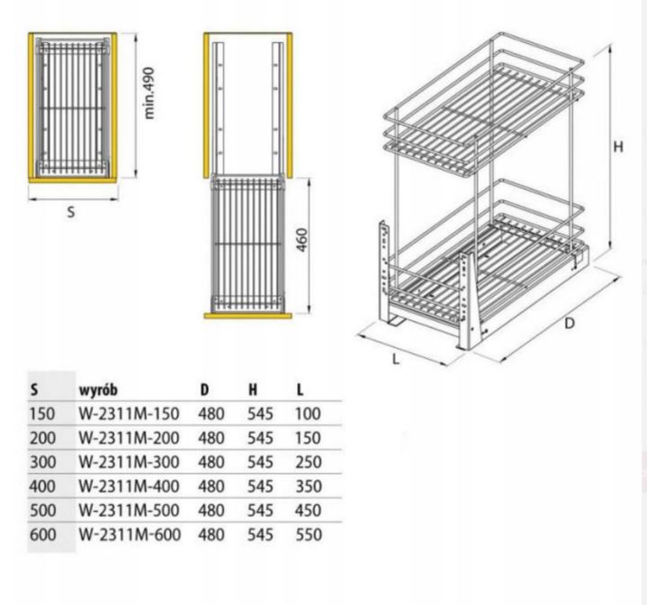 Zastosowanie: do szafki o szerokości zewnętrznej 150mm ( przy zastosowaniu płyty o grubości 18mm)