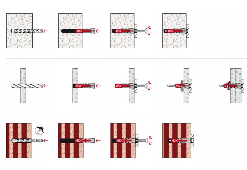 beton cegła pełna cegła silikatowa kamień naturalny (zwięzła struktura) płyty gipsowe gazobeton pustaki z betonu lekkiego Cena dotyczy 1 szt. (bez wkrętów)