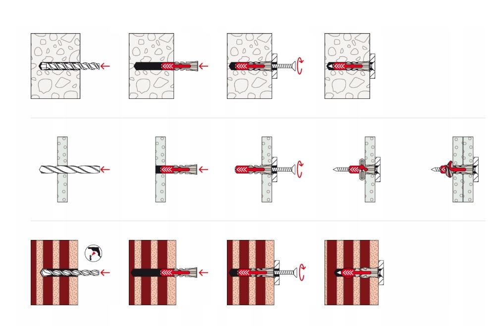 beton cegła pełna cegła silikatowa kamień naturalny (zwięzła struktura) płyty gipsowe gazobeton pustaki z betonu lekkiego Cena dotyczy 1 szt. (bez wkrętów)