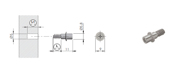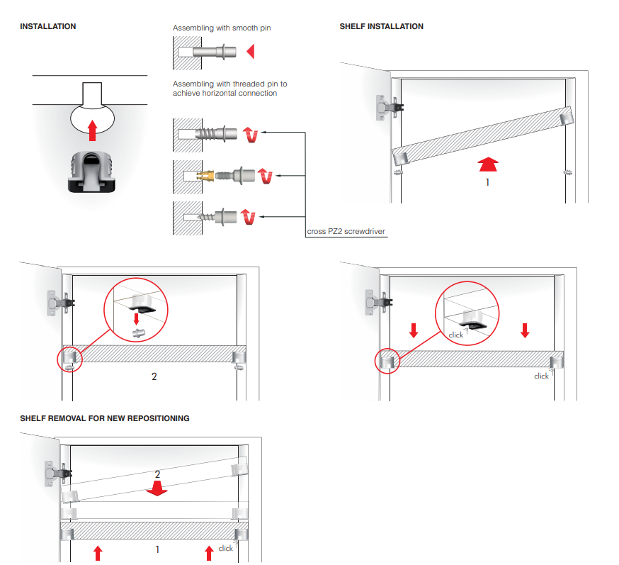 Flipper posiada specjalny trzpień gwintowany, aby uniknąć uszkodzenia otworu podczas zmiany położenia półki.