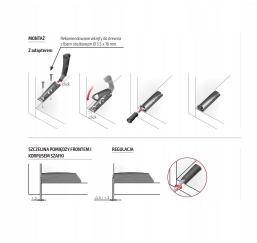 odbojnik z magnesem (IF-57008020AB) amortyzator (IF-57025040AB i IF-57025020AB) płytka samoprzylepna fi15 (IF-55006160XD)