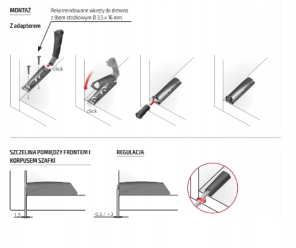 - Szerszy zakres regulacji: =6/-0.45 mm. poza regulacją ujemną, sprężyna pozostaje nieaktywna, co zapewnia bezpieczeństwo przy montażu