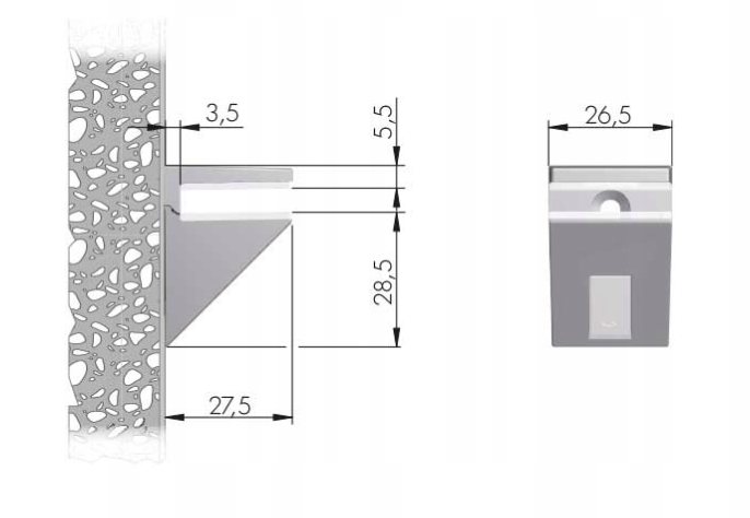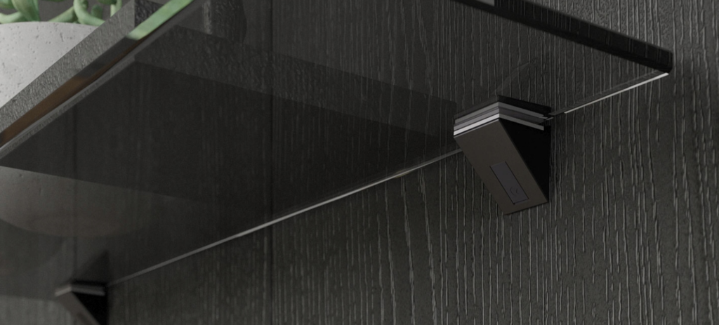 Podpórka KALABRONE MINI z nowoczesnym designem idealnie nadaje się do półek szklanych o grubości od 5 do 10mm. Dodatkowo podpórka posiada zaślepkę, która w łatwy sposób zasłania śrubę mocującą.