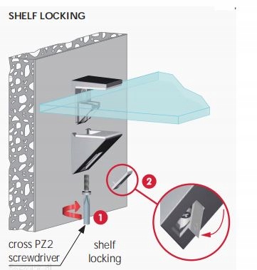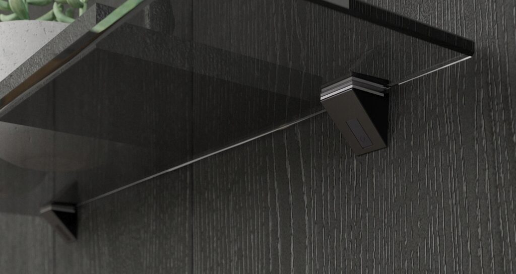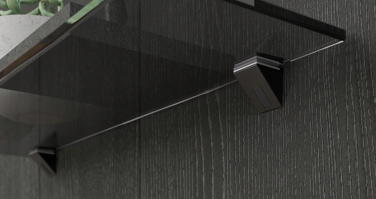 Podpórka KALABRONE MINI z nowoczesnym designem idealnie nadaje się do półek szklanych o grubości od 5 do 10mm. Dodatkowo podpórka posiada zaślepkę, która w łatwy sposób zasłania śrubę mocującą.