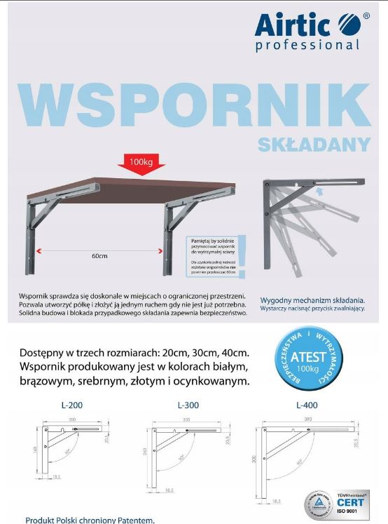 Strona główna > Produkty > Akcesoria meblowe > Okucia > Wsporniki do półek > KĄTOWNIK SKŁADANY L-400 BIAŁY