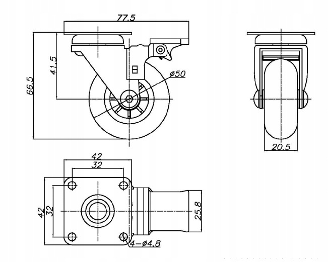 Kółko meblowe obrotowe AMIX fi50 przeźroczyste z hamulcem