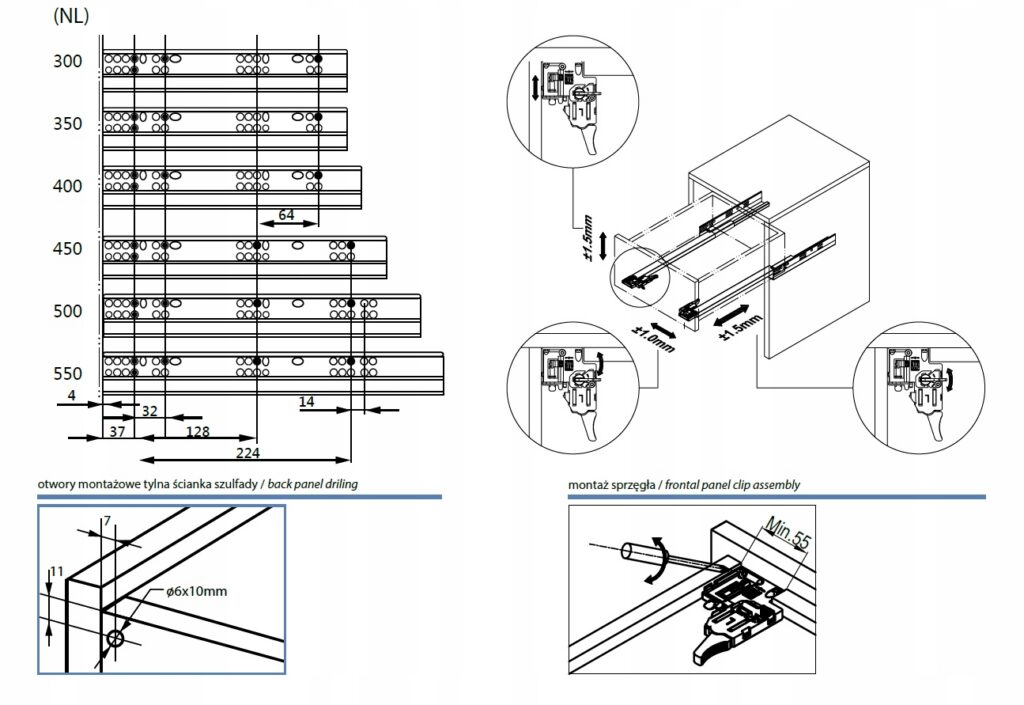 - Zastosowanie: szuflady skrzyniowe