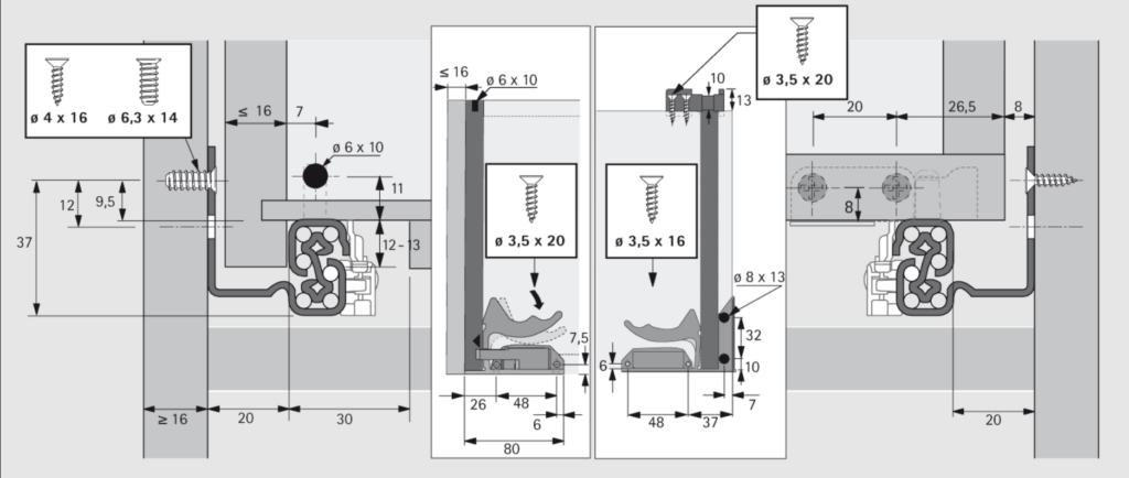 - Do szuflad o grubości boku do 19mm
