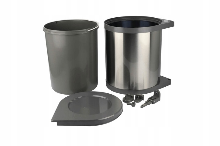 - Pojemnik w kolorze stali nierdzewnej oraz wiadro z uchwytem o pojemności 15L