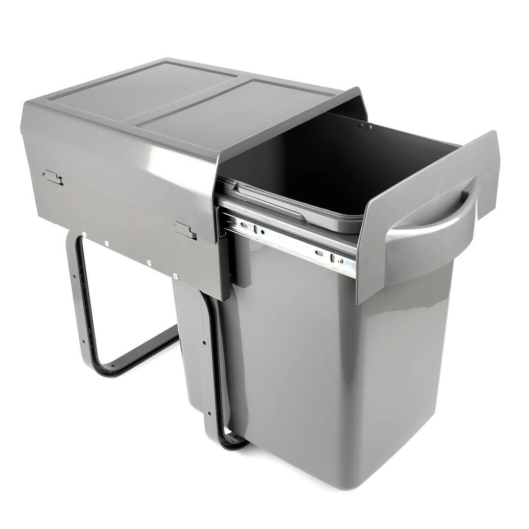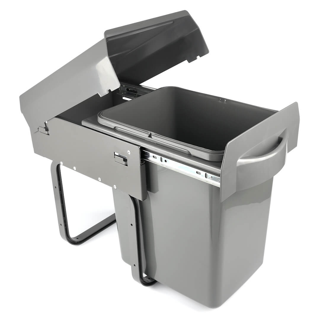 Prezentowany sortownik na śmieci został zaprojektowany specjalnie do szafek o szerokości wnęki  min 30 cm (szerokość zewnętrzna szafki przy zastosowaniu boków z plyty 18mm). Jedną z głównych cech kosza jest pokrywa zbiorcza, która utrzymuje zapachy i nieprzyjemne widoki wewnątrz kosza. Kosz wyposażony jest w jeden pojemniki o pojemności 20 litrów.