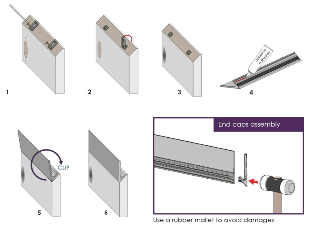 - Instalacja przez Clip-System. Bez mierzenia, bez frezowania, wystarczy przykręcić elementy montażowe i wcisnąć uchwyt.