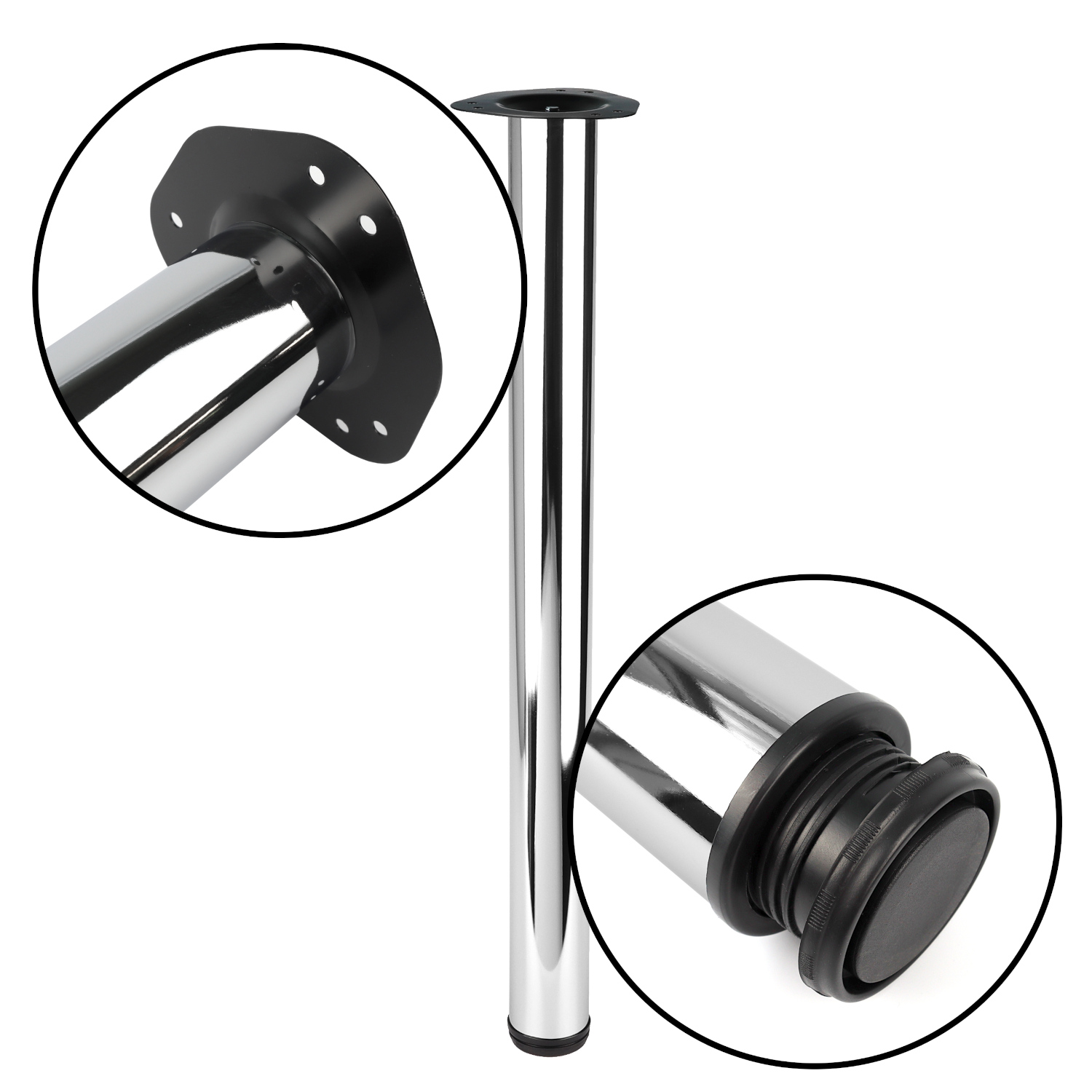 Noga meblowa do blatu, stołu H710 chrom to praktyczne rozwiązanie, które wpływa na stabilność mebla jednocześnie dbając o aspekt dekoracyjny. Wysoka jakość wykonania tego produktu gwarantuje nie tylko trwałość, ale również stabilność Twojego stołu. Możesz być pewien, że ta noga stołowa sprosta nawet największym obciążeniom. Dopuszczalne obciążenie pionowe wynosi imponujące 50 kg, co czyni ją odpowiednią do wielu różnych zastosowań. Regulowana wysokość to jedna z najważniejszych cech tego produktu. Dzięki temu będziesz mógł precyzyjnie dopasować nogi do poziomu, który Ci odpowiada. Bez względu na to, czy preferujesz wyższe, czy niższe blaty, ta noga stołowa spełni Twoje oczekiwania.