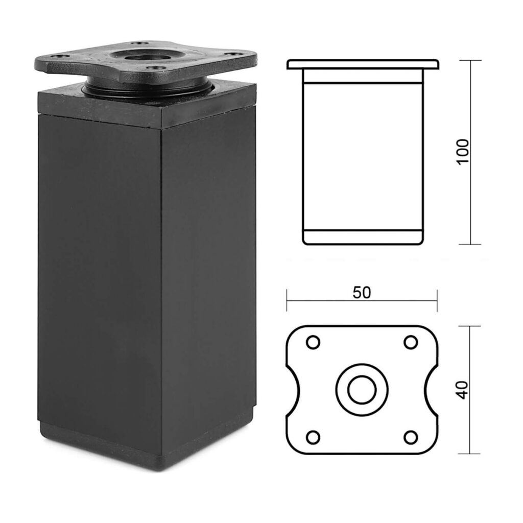 Noga, nóżka meblowa kwadratowa 40X40mm, H-100 10cm, regulowana, czarny mat
