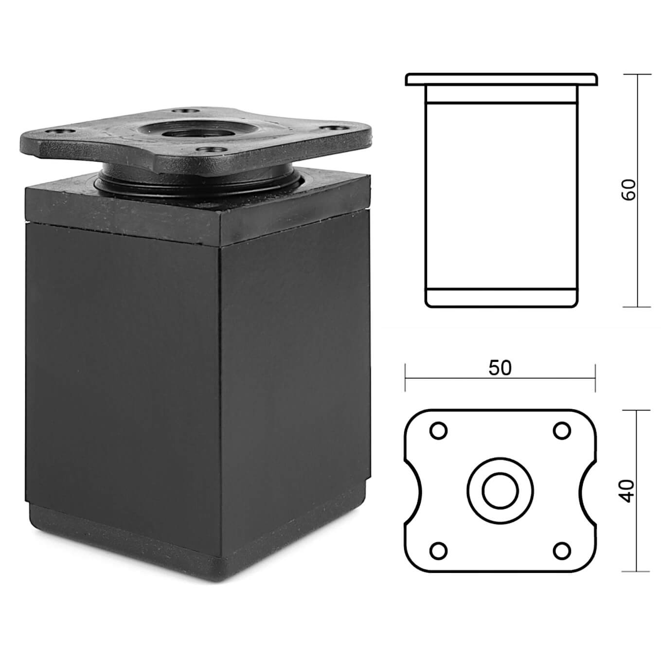 Noga, nóżka meblowa kwadratowa 40X40mm, H-60 6cm, regulowana, czarny mat
