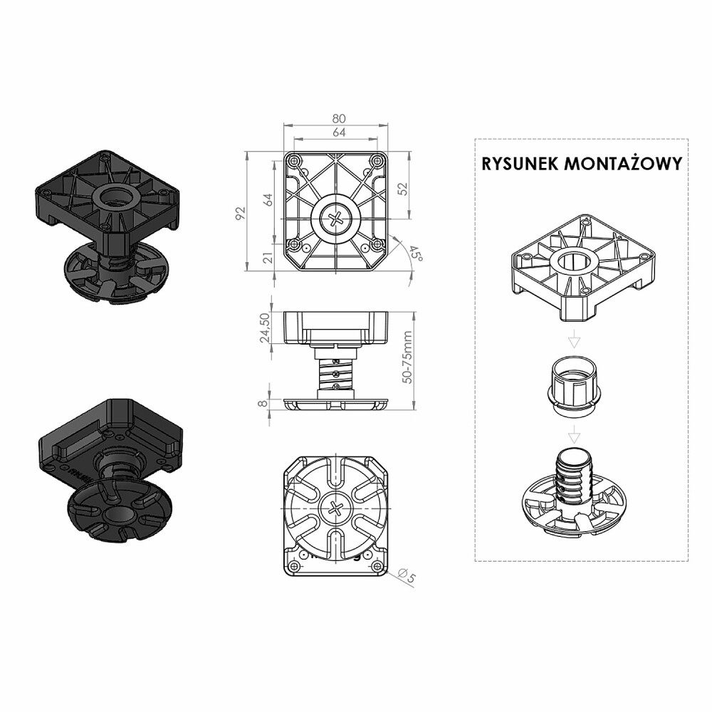 Nóżka kuchenna meblowa MULTILEG H-50-75 to praktyczne rozwiązanie, które wpływa na stabilność mebla jednocześnie dbając o aspekt dekoracyjny. Idealnie sprawdzi się w przypadku cięższych mebli.