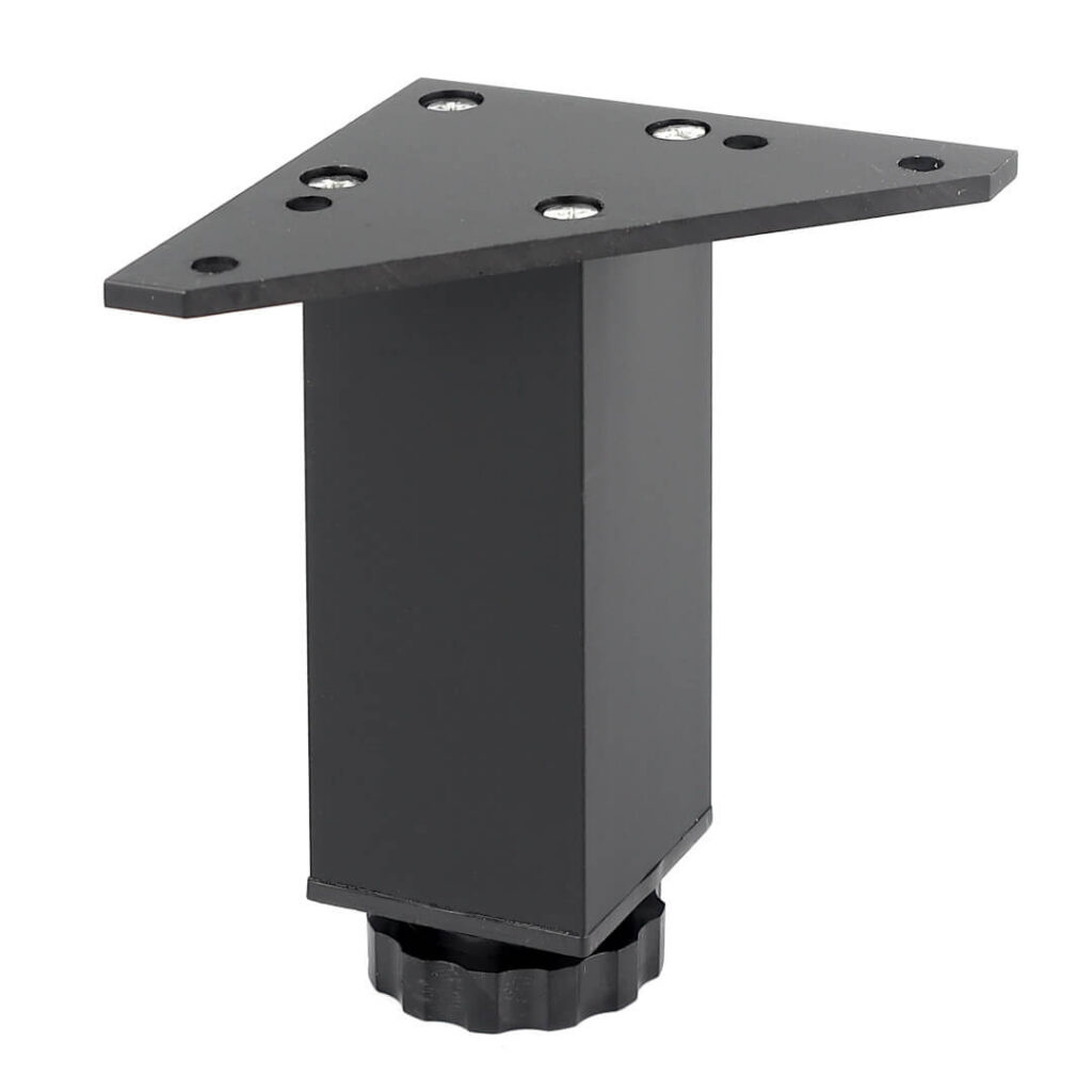 Nóżka industrialna 38×38 H-100 czarny mat to praktyczne rozwiązanie, które wpływa na stabilność mebla jednocześnie dbając o aspekt dekoracyjny. Wykonana z aluminium, zapewnia trwałość i wytrzymałość, a wzmocniona głowica dodatkowo zwiększa jej stabilność. Regulowana stopka z tworzywa sztucznego umożliwia dostosowanie wysokości nóżki.