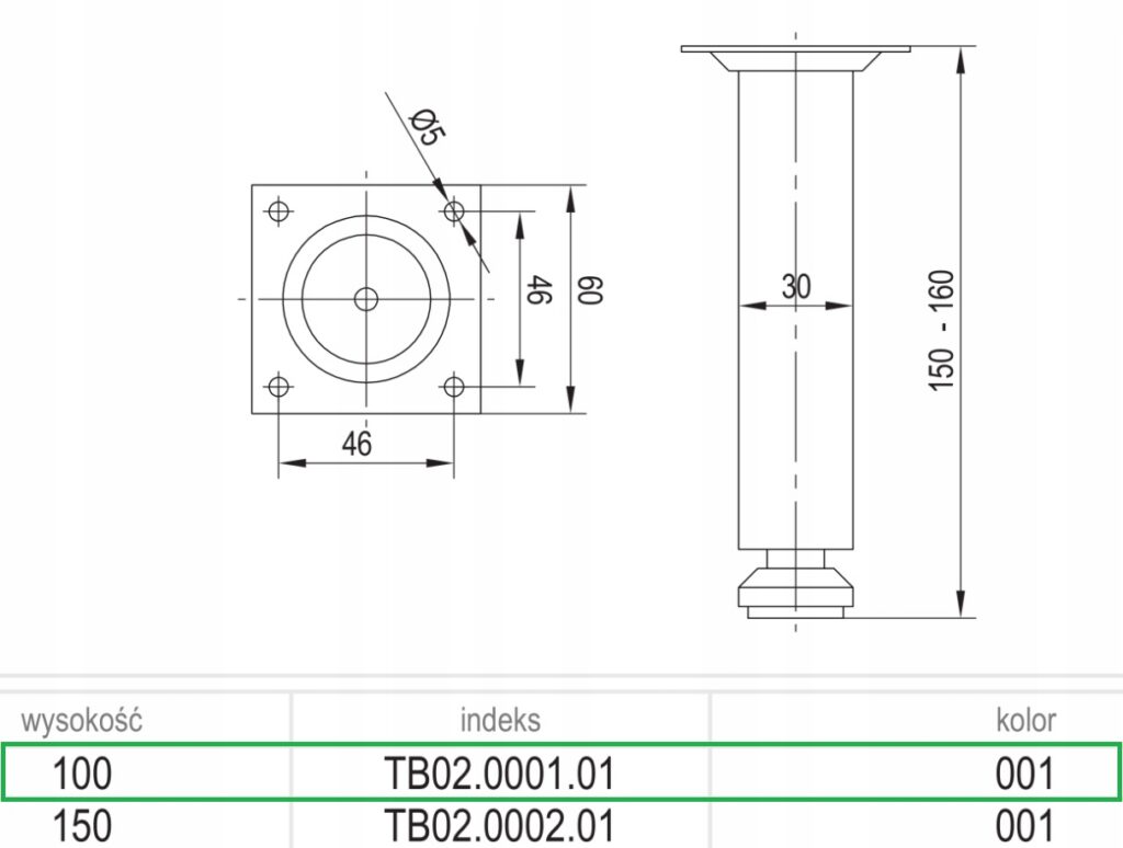 Nóżka meblowa okrągła M01 FI30 H-100 chrom to praktyczne rozwiązanie, które wpływa na stabilność mebla jednocześnie dbając o aspekt dekoracyjny.