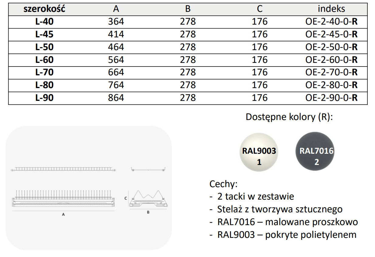- Zestaw zawiera: ociekarka, tacka, stelaż z tworzywa sztucznego, wkręty mocujące