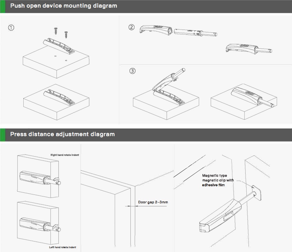 - Otwieranie/Zamykanie poprzez dociśnięcie