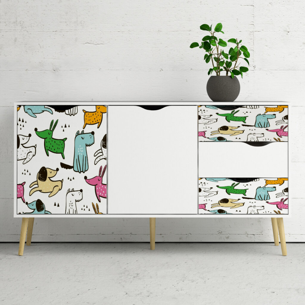Okleina meblowa dziecięca pieski to praktyczny i ekonomiczny sposób na odświeżenie mebli bez konieczności ich wymiany. Co więcej, folia samoprzylepna o szerokości 45 cm to uniwersalny rozmiar, który pasuje do większości powierzchni meblowych. Poniższy wzór przedstawia dziecięcy motyw, który skutecznie odmieni wygląd pokoju dziecięcego bez potrzeby wymiany mebli. Dodatkowo, jej kolorowy i ciekawy wzór doda charakteru oraz stworzy przyjazną atmosferę dla najmłodszych mieszkańców. Okleina została zaprojektowana z myślą o pokojach dziecięcych, uwzględniając zarówno aspekty estetyczne, jak i funkcjonalne.