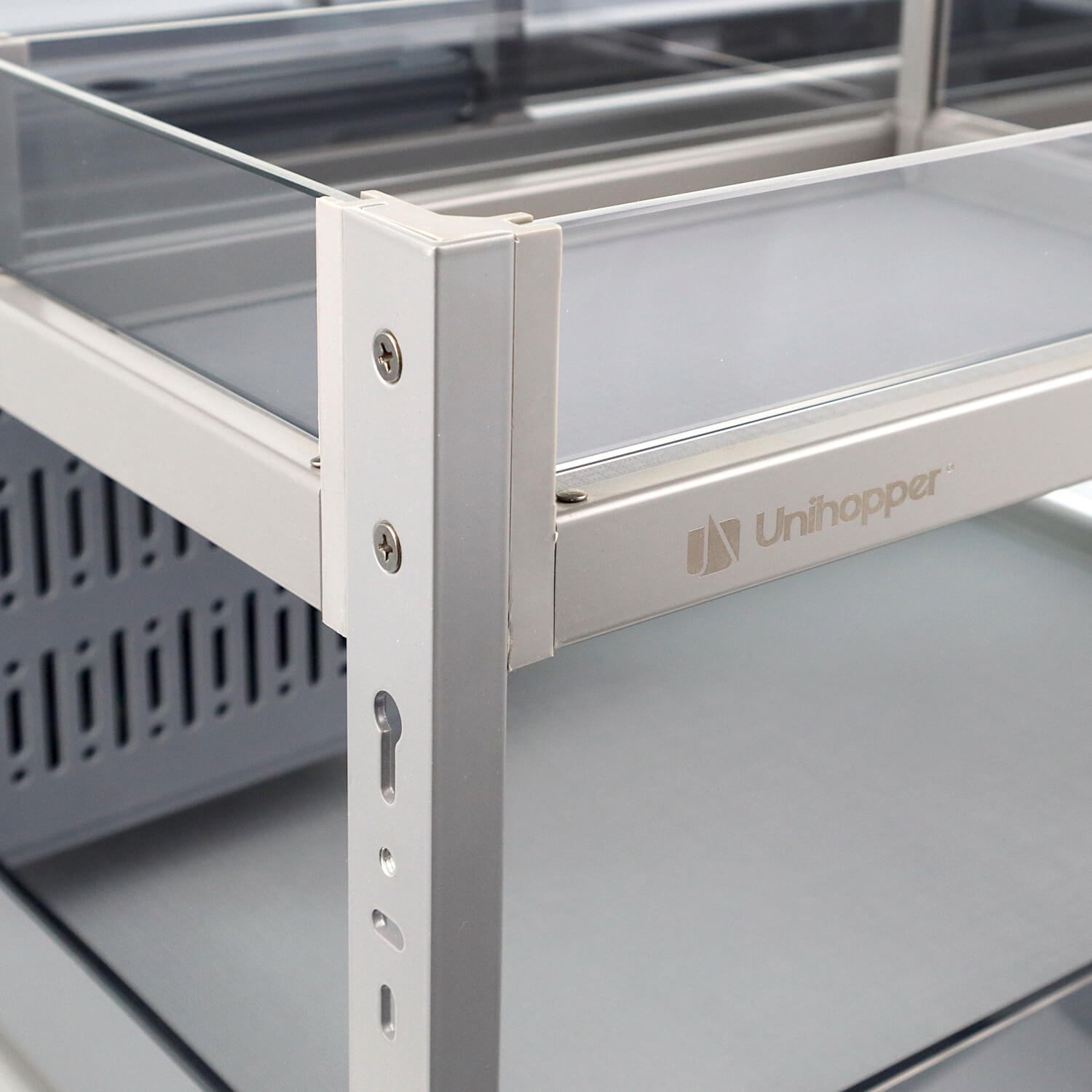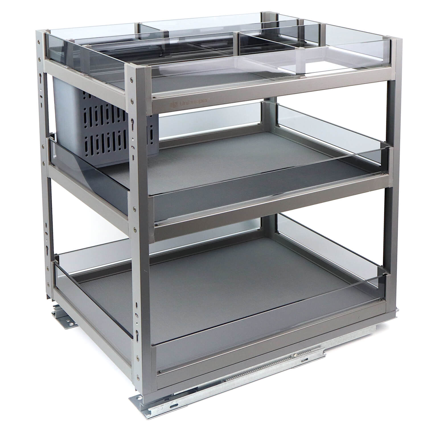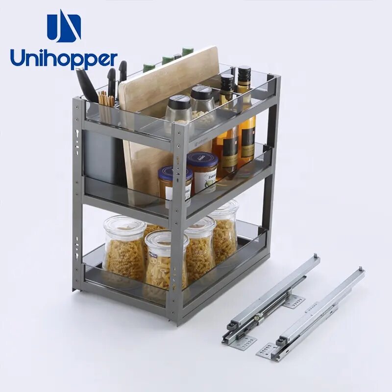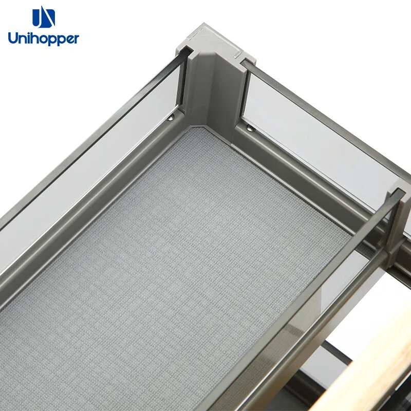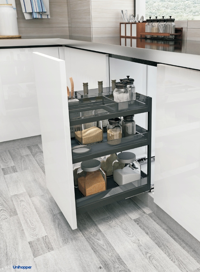 Carga firmy Unihopper z kolekcji Phantom to doskonałe rozwiązanie dla osób, które cenią sobie funkcjonalność, nowoczesny design i ergonomiczne rozwiązania w kuchni. Ten szklany kosz wielofunkcyjny został zaprojektowany z myślą o szafkach o szerokości 400mm. Cargo wyposażone jest w prowadnice pełnego wysuwu dzięki czemu łatwo można uzyskać dostęp do przechowywanych przedmiotów. Kosz posiada również wbudowany w prowadnice system cichego domyku.