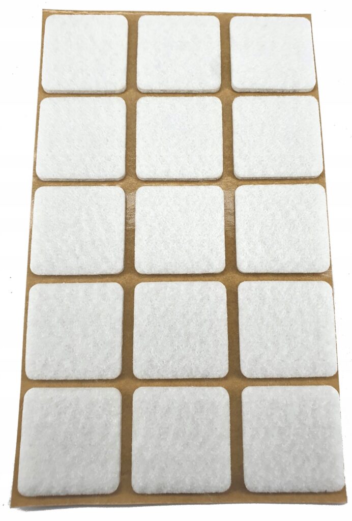 Samoprzylepne podkładki filcowe. Posiadają klej nałożony bezpośrednio na filc zamiast taśmy samoprzylepnej. Dzięki temu nie odklejają się i zapewniają niezawodną ochronę przed zarysowaniami.