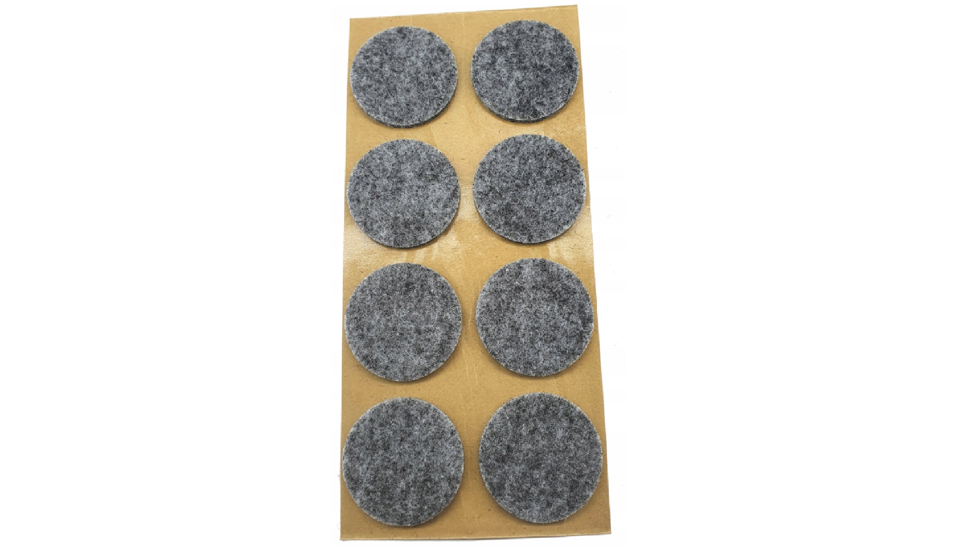 Samoprzylepne podkładki filcowe. Posiadają klej nałożony bezpośrednio na filc zamiast taśmy samoprzylepnej. Dzięki temu nie odklejają się i zapewniają niezawodną ochronę przed zarysowaniami.