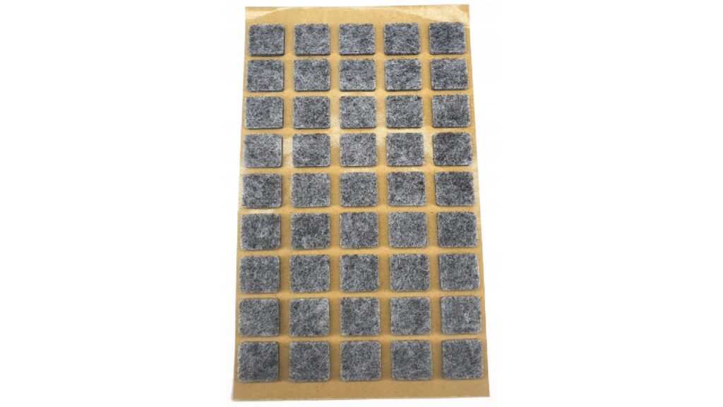 Samoprzylepne podkładki filcowe. Posiadają klej nałożony bezpośrednio na filc zamiast taśmy samoprzylepnej. Dzięki temu nie odklejają się i zapewniają niezawodną ochronę przed zarysowaniami.