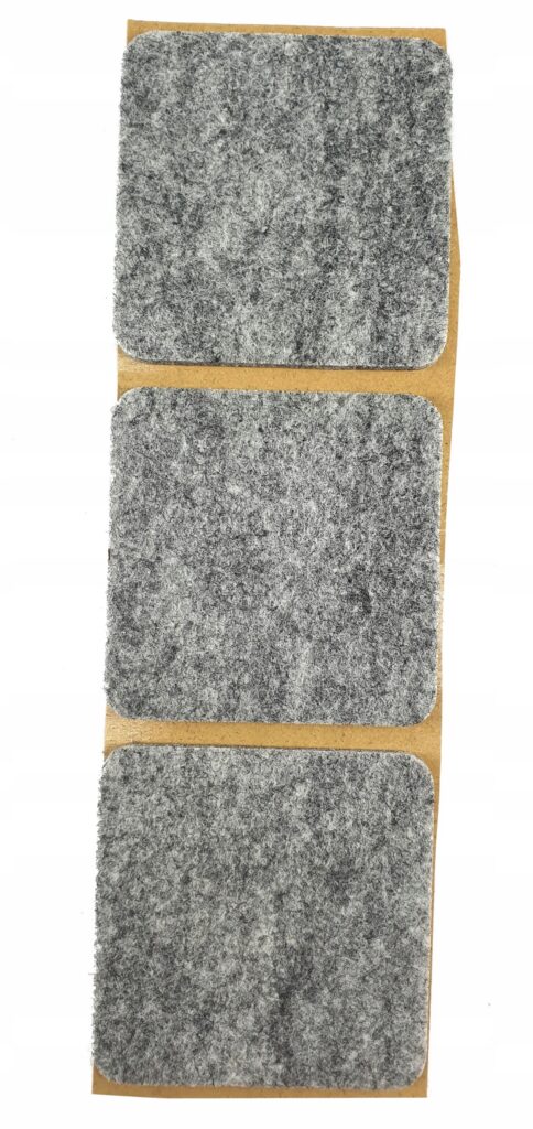 Samoprzylepne podkładki filcowe. Posiadają klej nałożony bezpośrednio na filc zamiast taśmy samoprzylepnej. Dzięki temu nie odklejają się i zapewniają niezawodną ochronę przed zarysowaniami.