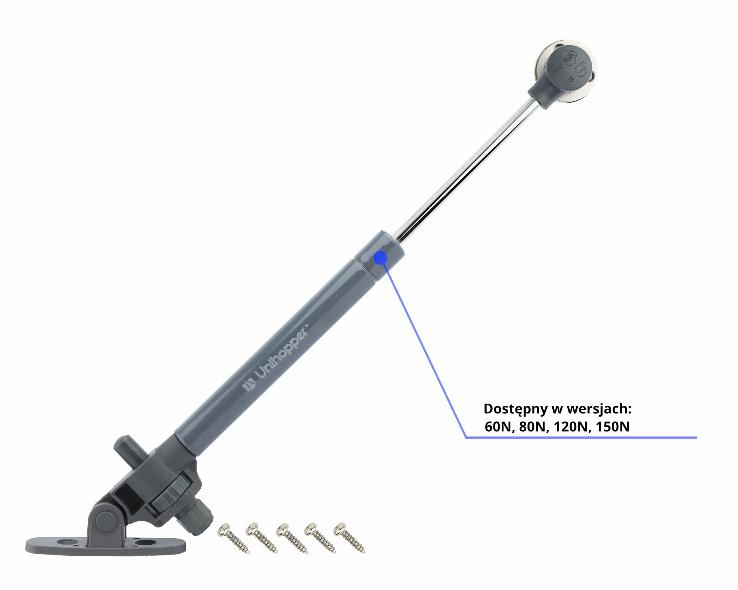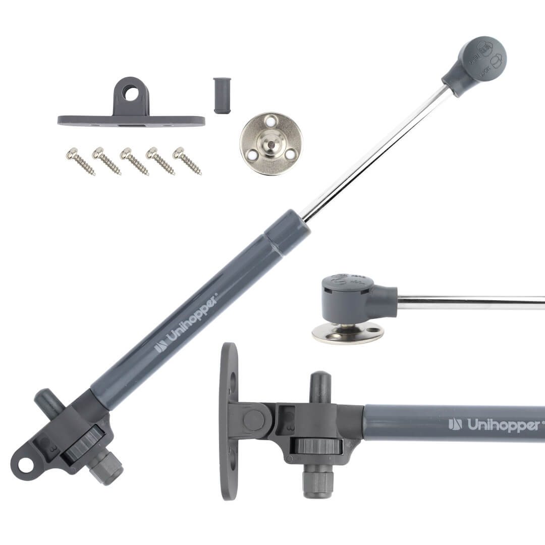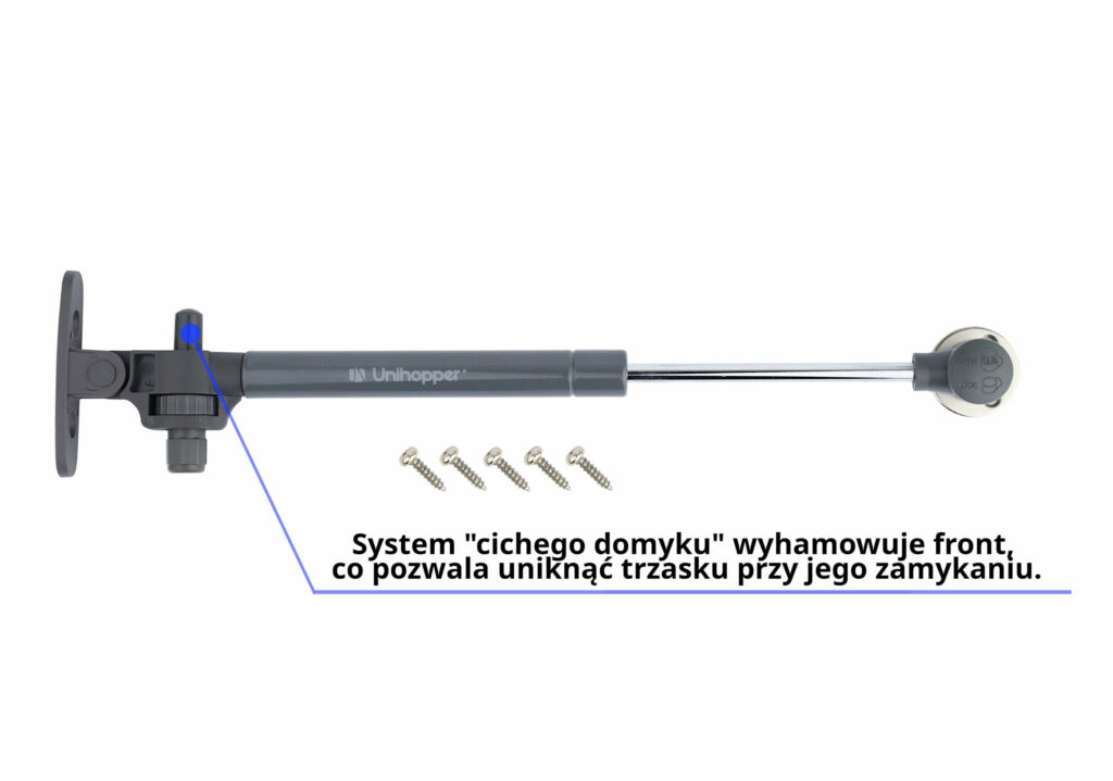 Żadne szafki nie mogą zapewnić pełnej funkcjonalności, jeśli nie zostaną wykonane z trwałych i niezawodnych elementów. Wysokiej jakości akcesoria meblowe dbają o wygodne użytkowanie, a dodatkowo mogą służyć bezawaryjnie nawet przez wiele lat! Do takich artykułów należą prezentowane w tej ofercie podnośniki gazowe z systemem cichego domyku UNIHOPPER. Posiadają nowoczesny mechanizm soft-close, który jest sprawdzonym rozwiązaniem do szafek każdego rodzaju. Wyróżniającą cechą tych produktów jest regulacja hamulca – możemy ustawić mechanizm tak, aby spowalniał front w wybranym przez nas momencie. W zestawie z mocowaniami oraz wkrętami.