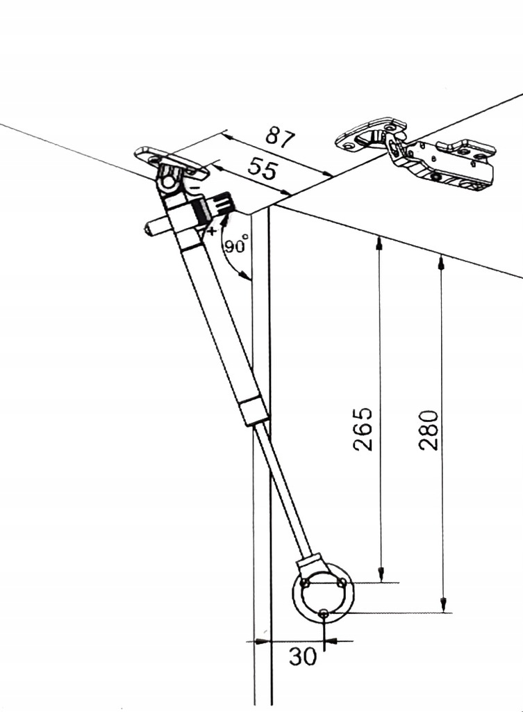 - Zastosowanie: Podnośnik gazowy stosowany we frontach meblowych otwieranych do góry