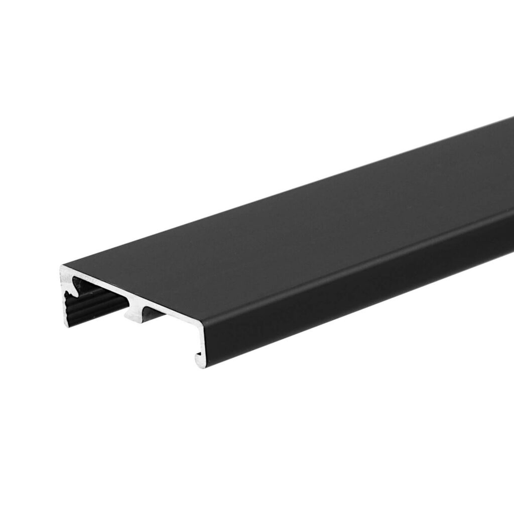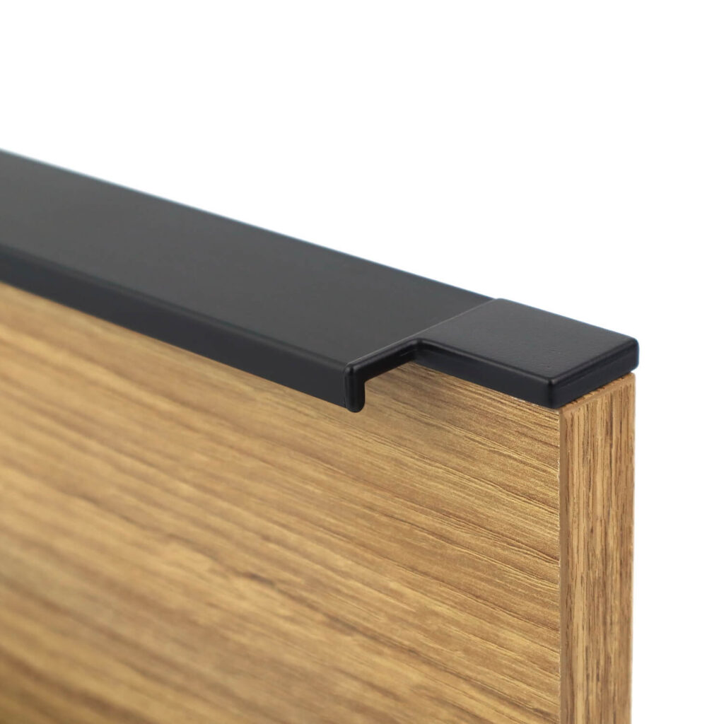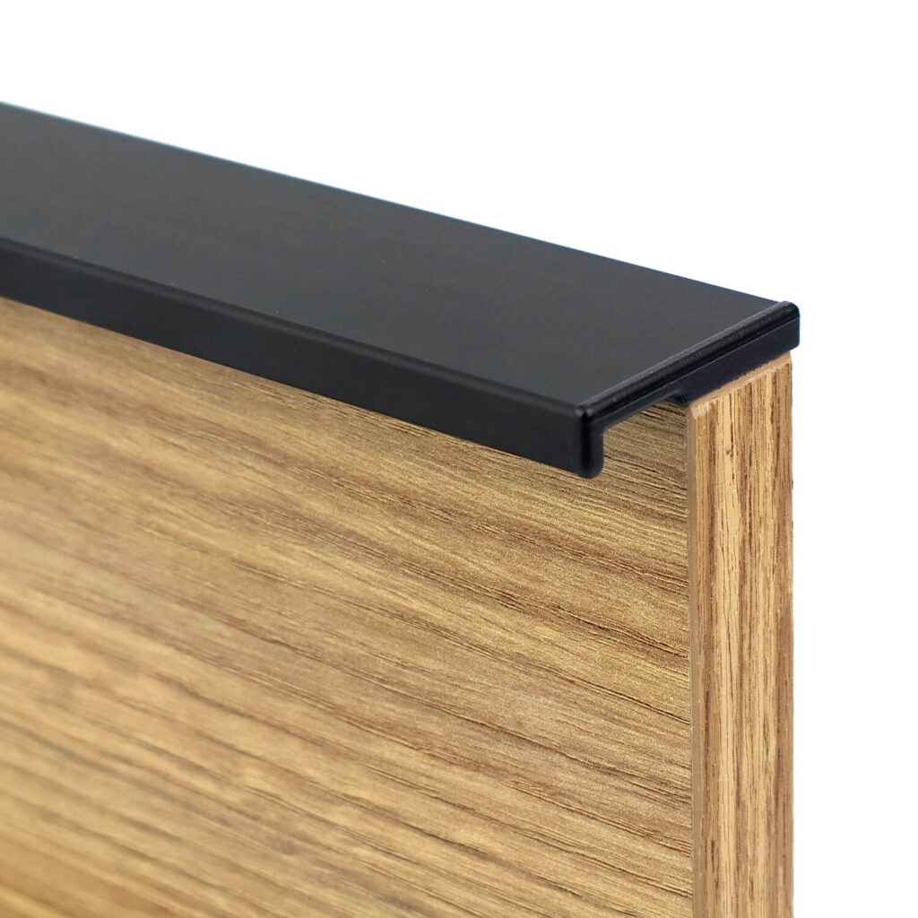 Syma5 Edge to innowacyjny uchwyt profilowany od marki Rincomatic, stworzony dla osób poszukujących eleganckich i dyskretnych akcentów w wystroju wnętrz. Ten wyjątkowy uchwyt wykonany z aluminium, o czarnym, matowym wykończeniu, doskonale komponuje się z nowoczesnymi meblami kuchennymi, pokojowymi i garderobianymi. Dzięki swojej unikalnej konstrukcji wprowadza stylowe, minimalistyczne linie na frontach drzwi i szuflad, nadając meblom nowoczesny wygląd.Syma5 Edge wyróżnia się łatwością montażu dzięki systemowi klipsów, które pozwalają na niemal beznarzędziową instalację. Klipsy przytwierdza się do krawędzi płyty (o grubości 18–21 mm), a uchwyt wystarczy przyciąć do pożądanej długości i wcisnąć na miejsce. Montaż na klipsach eliminuje widoczne wkręty, co odróżnia Syma5 Edge od tradycyjnych uchwytów krawędziowych i zapewnia pełną estetykę. Dzięki zastosowaniu wielu typów zaślepek można uzyskać dowolną długość uchwytu, nie ma ograniczeń do typowej rozmiarówki jak w przypadku innych uchwytów dostępnych na rynku.Zaślepki końcowe (dostępne w sprzedaży osobno), umożliwiają personalizację uchwytu pod kątem stylu i długości, co pozwala tworzyć unikatowe fronty meblowe. Opływowy kształt po zamontowaniu zaślepek to dodatkowy atut, podkreślający nowoczesny charakter projektu.