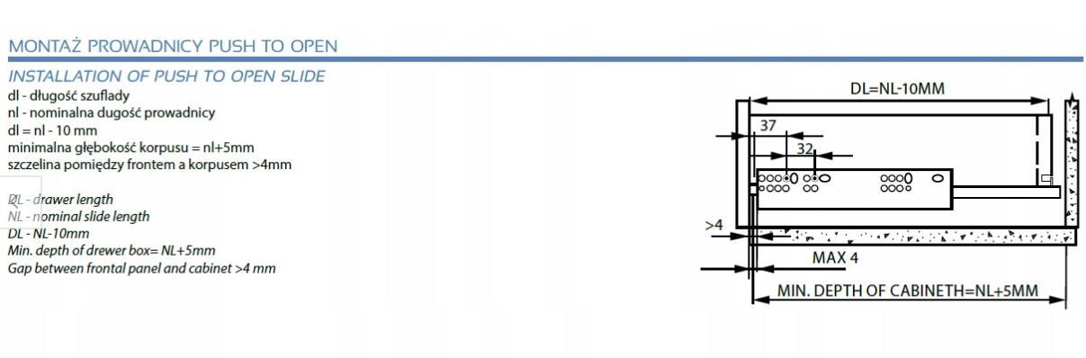 Prowadnica DONATI COMFORT 3D push-to-open, ze sprzęgłem L-350 (T16mm)