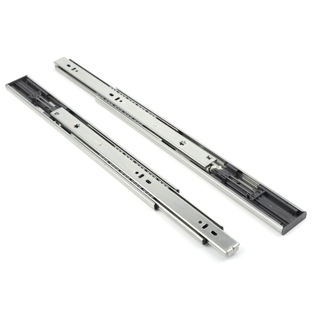 Prowadnice kulkowe są jednym z kluczowych elementów w szafkach, które umożliwiają płynne wysuwanie i wsuwanie szuflad. Firma Grass Hopper, wprowadziła na rynek prowadnice kulkowe, które mają wiele zalet w porównaniu do innych prowadnic dostępnych na rynku.Prowadnice kulkowe L-350mm z funkcją Push to Open i spowalniaczem to produkt, który jest wygodny w użytkowaniu i oferuje wiele zalet. Dzięki funkcji Push to Open otwieranie szuflady jest łatwe i intuicyjne – wystarczy nacisnąć front, a szuflada sama się otworzy. Z kolei spowalniacz umożliwia płynne i kontrolowane zamknięcie szuflady, co zapobiega jej gwałtownemu zamknięciu i minimalizuje ryzyko uszkodzenia zawartości.Ponadto, prowadnice kulkowe L-500mm umożliwiają pełny wysuw szuflady, dzięki czemu łatwo dostać się do każdego jej punktu. Są także wytrzymałe i mogą unieść obciążenie do 35 kg, co oznacza, że szuflada jest stabilna i bezpieczna w użytkowaniu.