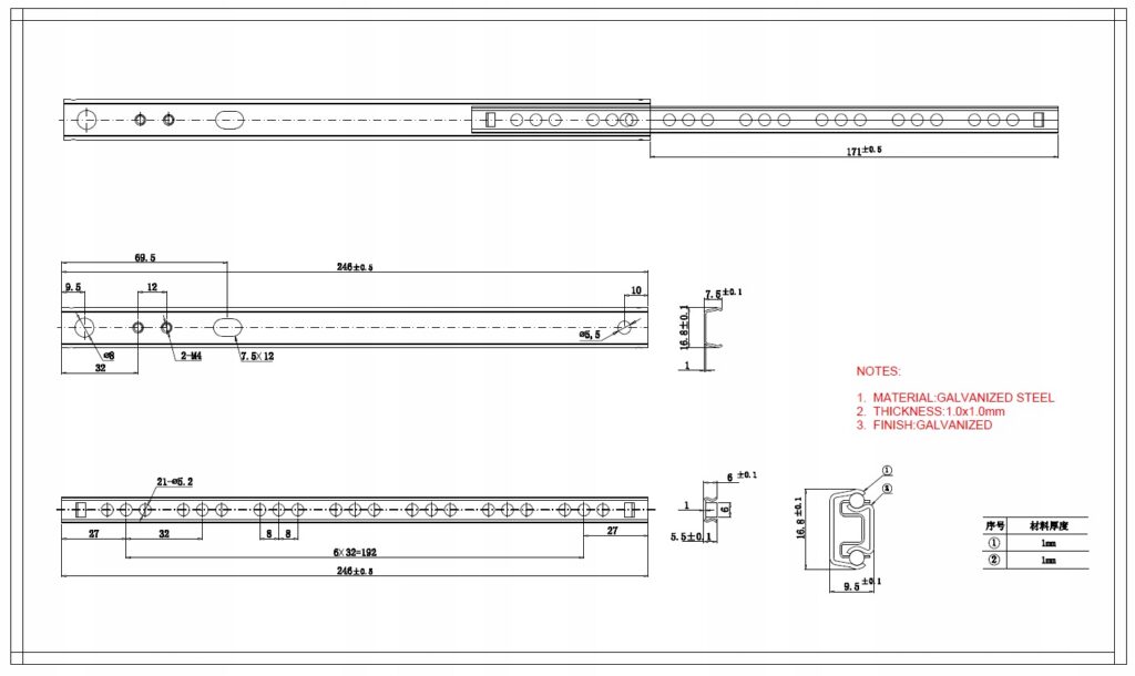 Prowadnica kulkowa udo szuflad DB/17