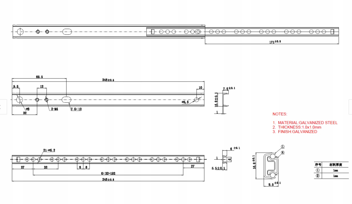 Prowadnica kulkowa do szuflad DB/17