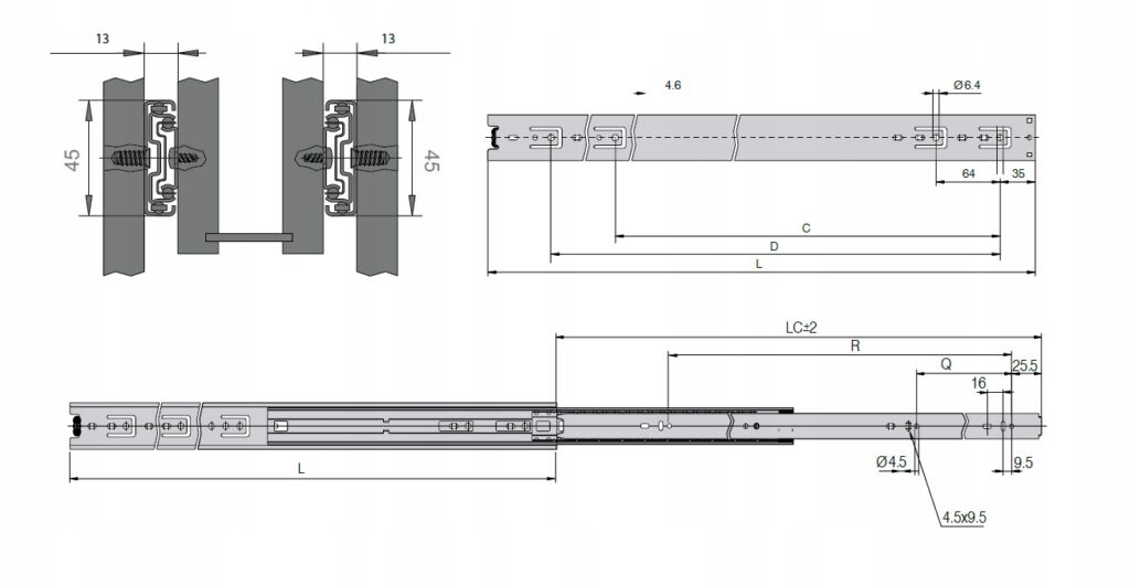 Prowadnica kulkowa GH L-400 mm PEŁNY WYSUW