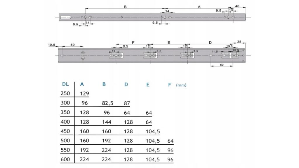 Prowadnica kulkowa L-500mm Push to open