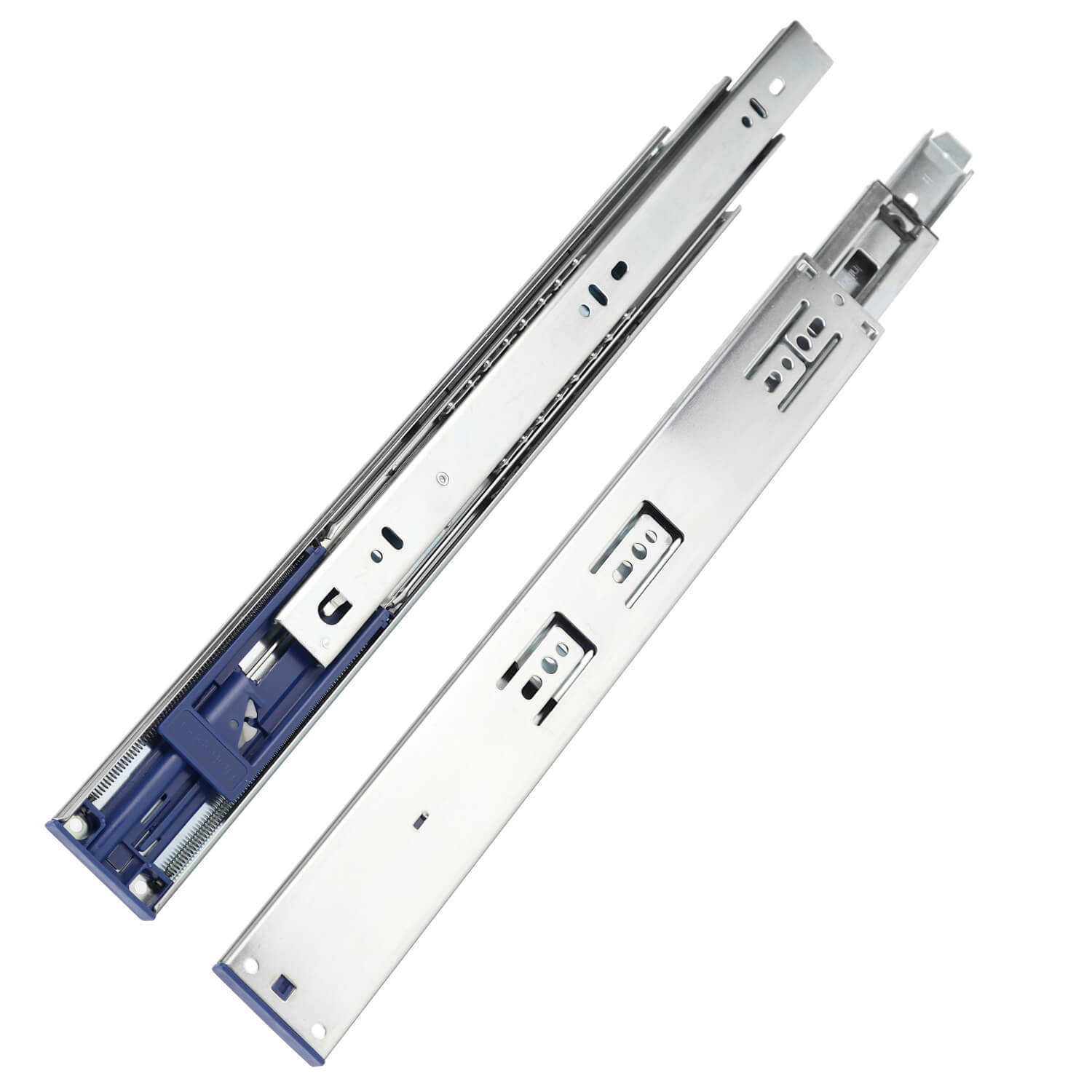 Prowadnice kulkowe L-500mm z funkcją cichego domyku to produkt, który jest wygodny w użytkowaniu i oferuje wiele zalet. Spowalniacz prowadnicy umożliwia płynne i kontrolowane zamknięcie szuflady, co zapobiega jej gwałtownemu zatrzaśnięciu i minimalizuje ryzyko uszkodzenia zawartości.