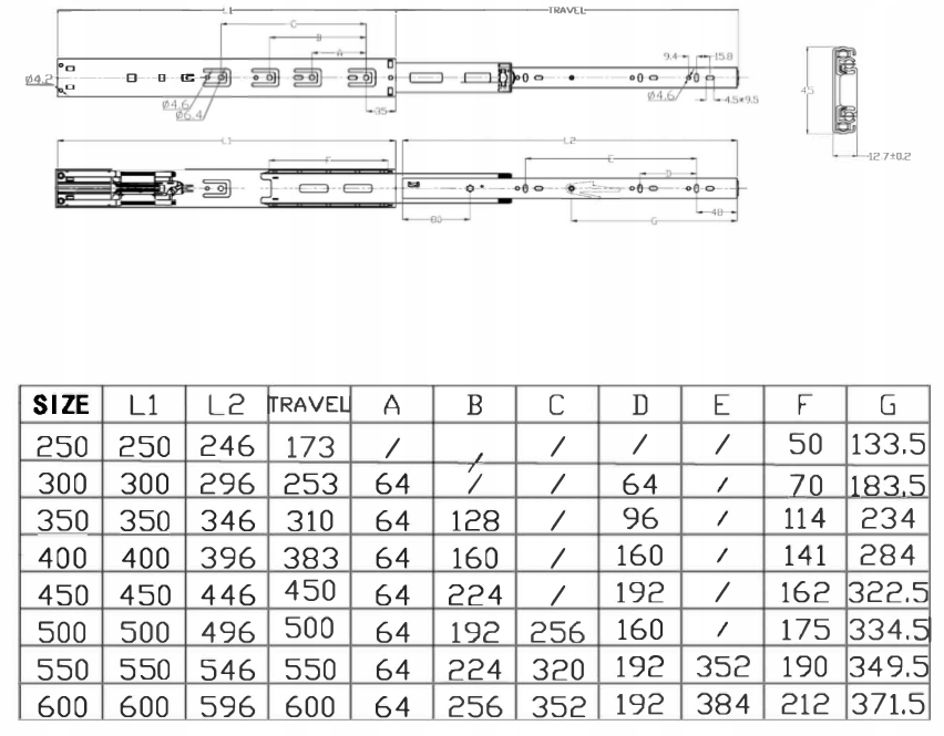SKU: BF-DUO-550 Kategorie: Akcesoria meblowe, Prowadnice, Prowadnice kulkowe