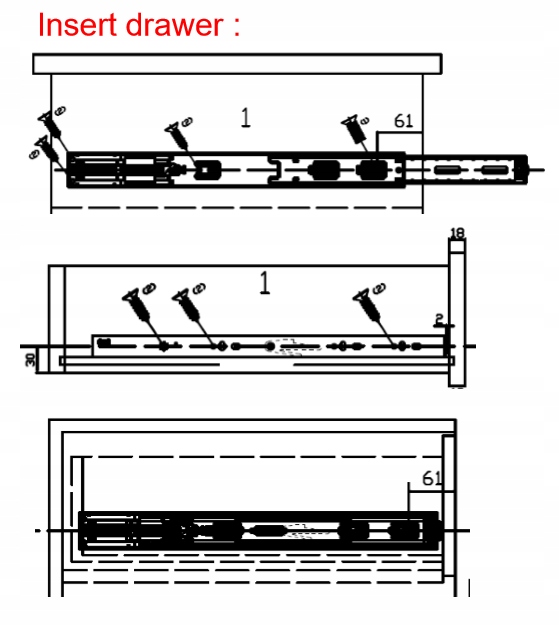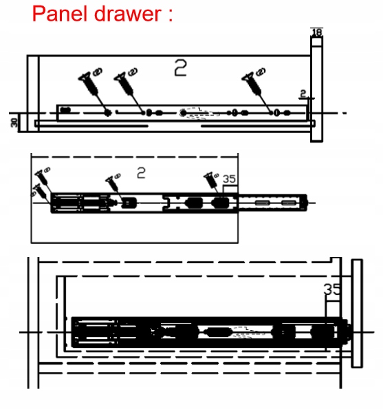 • Zestaw składa się z 2szt prowadnic (kpl. na 1 szufladę)