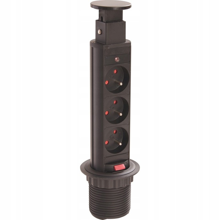 Strona główna > Produkty > Akcesoria meblowe > Elektryka i akcesoria > Gniazda > Przedłużacz biurkowy wpuszczany 60mm 3-gniazdkowy czarny