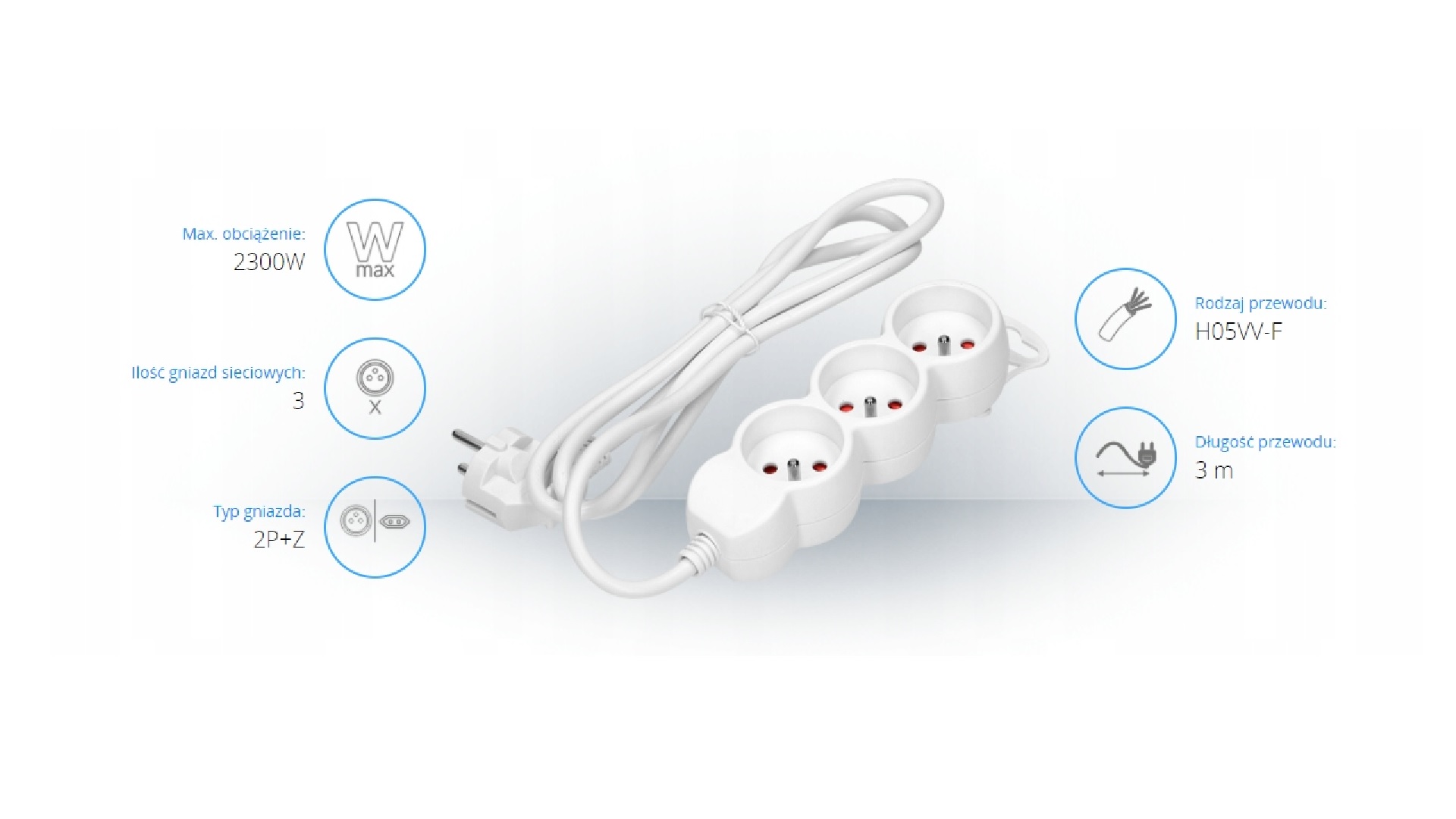 Przedłużacz listwowy 3-gniazdkowy 3m biały