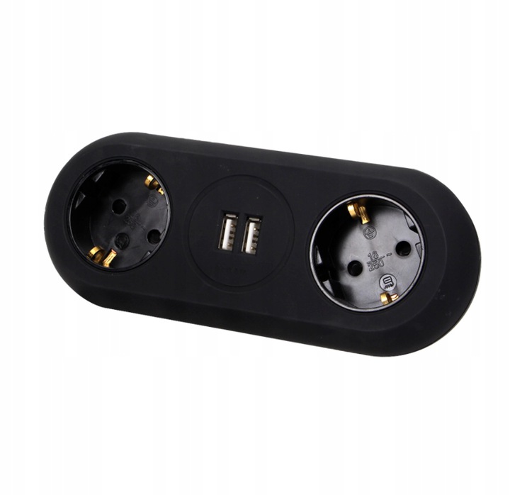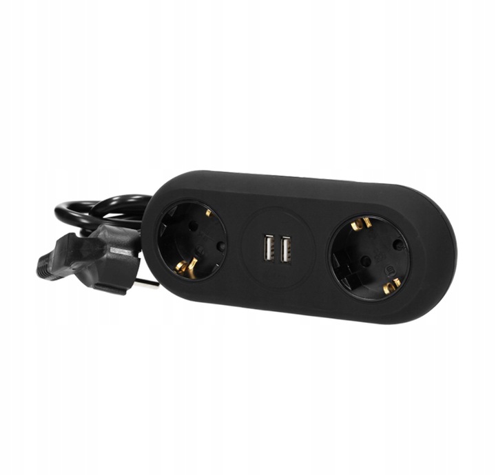Przedłużacz montowany 2-gniazdkowy czarny