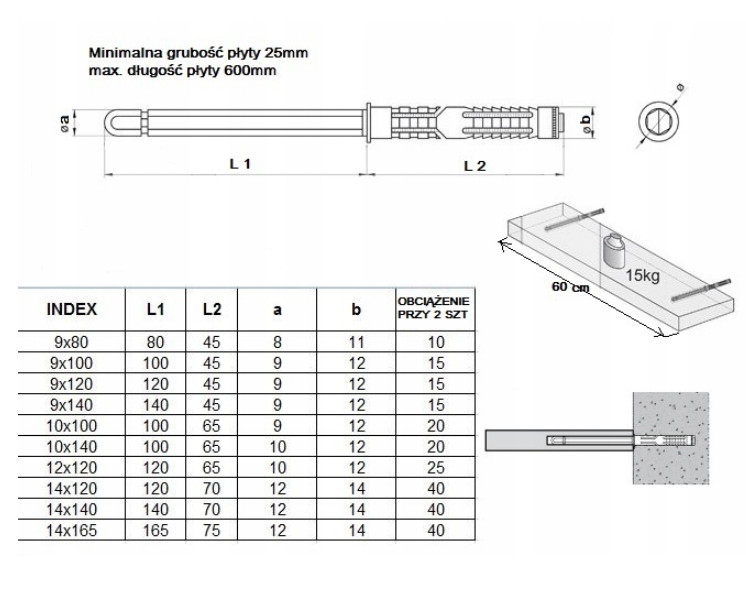 Nośność na 2 ramiona (wraz z półką): 15kg