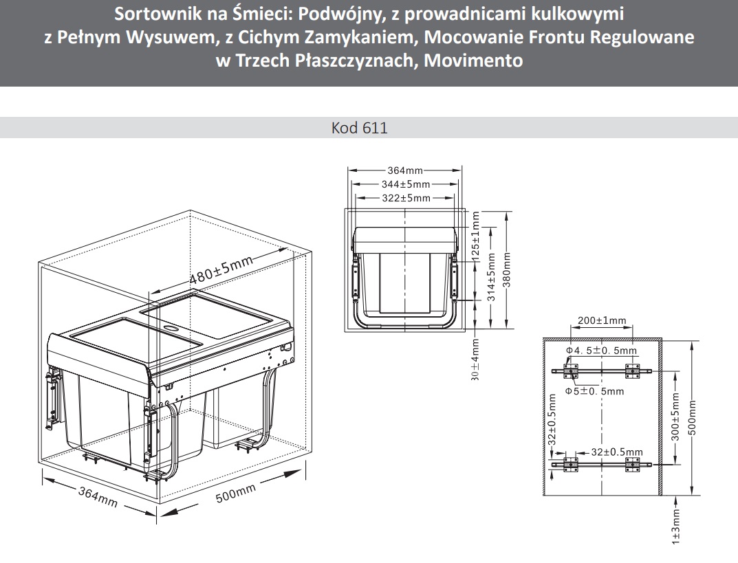 - głębokość: 480±5mm.
