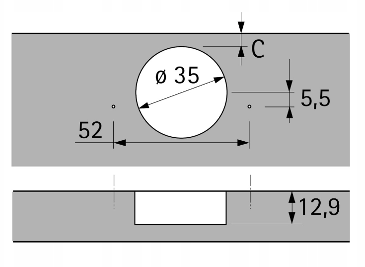 - Rozstaw nawierceń: 52 x 5,5 mm