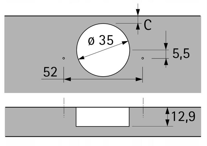 - TH-Rozstaw nawierceń 52 x 5,5 mm