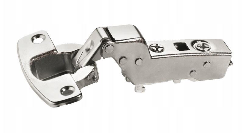 Do drzwi drewnianych Firma: Hettich Materiał: Stal niklowana Kod zawiasu: 9071207 Kod prowadnika: 9071576 Zestaw zawiera: Zawias